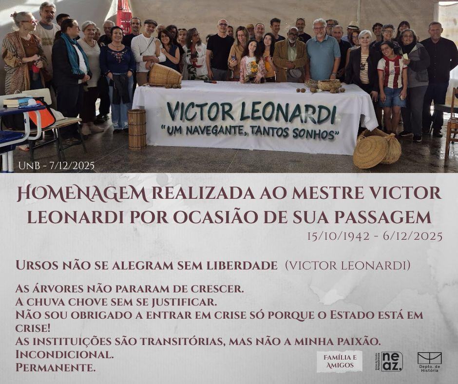 Victor Leonardi nos deixou nesse sábado (6/12/2025). Homenageamos este historiador que tanto contribuiu para o NEAz ser uma referência no Brasil e para tantos e tantas que formou para a vida. Nossa saudade eterna. Deixamos aqui um pequeno resumo do legado de Victor Leonardi, contido em sua página oficial (https://www.victorleonardi.com.br):